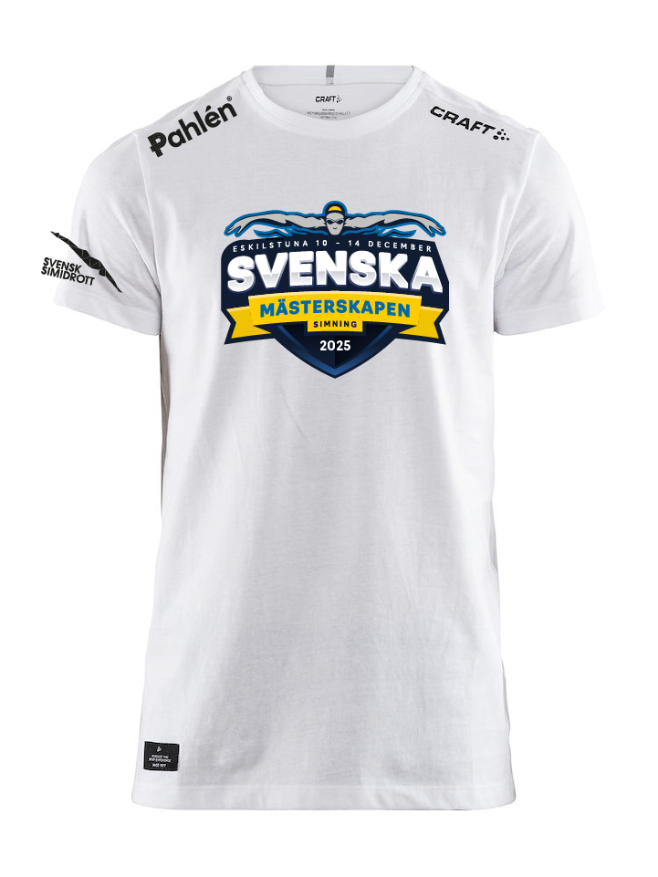 Stort Svenska Mästerskapen tryck på bröstet och Svensk simidrotts logga på ärmen.